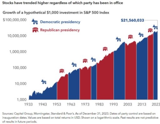 We would like to remind you that, despite who wins the election, technology companies will continue to make smartphones and invest in AI, pharmaceutical companies will continue to create and manufacture new drugs to help manage disease, and consumer brand manufacturers will continue to produce the toilet paper and Raisin Bran you consume. Typically, once the uncertainty of an election cycle has passed, the leaders of great American companies will have a better understanding of the tax and regulatory policy they must contend with and will adjust accordingly.