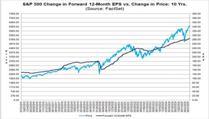 We are about two-thirds of the way through the second quarter earnings season, and the S&P 500 is reporting unexpectedly strong results. On a year-over-year basis, the S&P 500 is reporting double-digit earnings growth for the third consecutive quarter. In addition, S&P 500 companies are reporting strong numbers for revenues relative to analyst expectations and year-ago results. According to FactSet, for Q2 2025 (with 66% of S&P 500 companies reporting actual results), 82% of S&P 500 companies have reported a positive EPS surprise, and 79% of S&P 500 companies have reported a positive revenue surprise. The blended (year-over-year) earnings growth rate for the S&P 500 is 10.3%. This is impressive considering that on June 30th, the estimated (year-over-year) earnings growth rate for the S&P 500 for Q2 2025 was 4.9%.