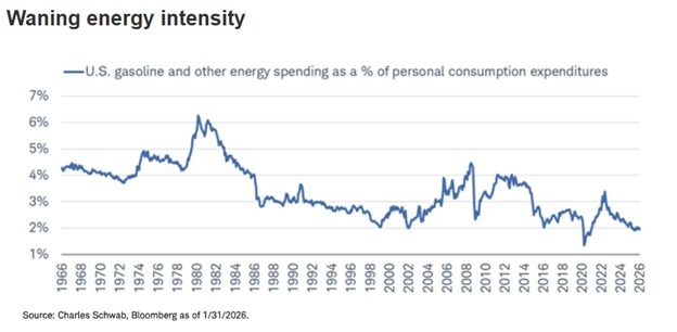 So while rising oil prices still ripple through the global economy, the U.S. is less directly exposed than it once was. We’re not insulated, but we’re also not sitting in the same vulnerable seat we occupied in 1979 or even 2008. At the same time, the economy itself has become less energy-intensive.