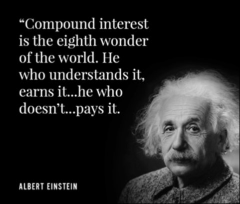 I would never contradict Albert Einstein's wisdom and intellect. I thought this was a great message to share with you, our trusted friends and clients. It is an important reminder of what really builds wealth over time: the uninterrupted compounding of interest. Please share this important message with your friends and loved ones as we continue "Moving Life Forward."