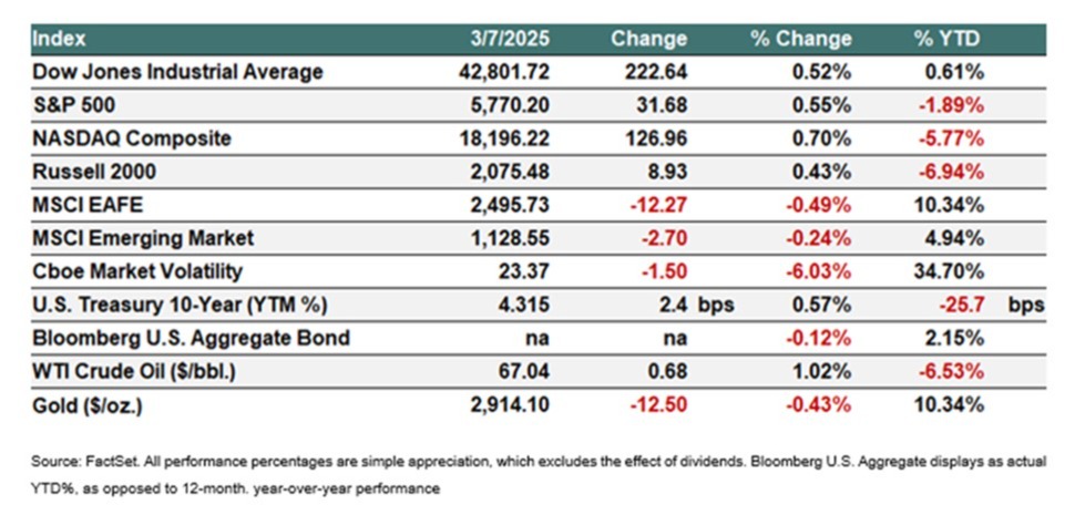 The Horizon Advisor Network Investylitics Committee members met on the afternoon of Monday, March 10th, as the stock markets' recent downturn was accelerating towards correction territory, defined as a drop of more than 10% from its recent highs reached on February 19th. This time, a confluence of negative headlines and uncertainty around policy risk related to the new presidential administration was fanning the flames of volatility.