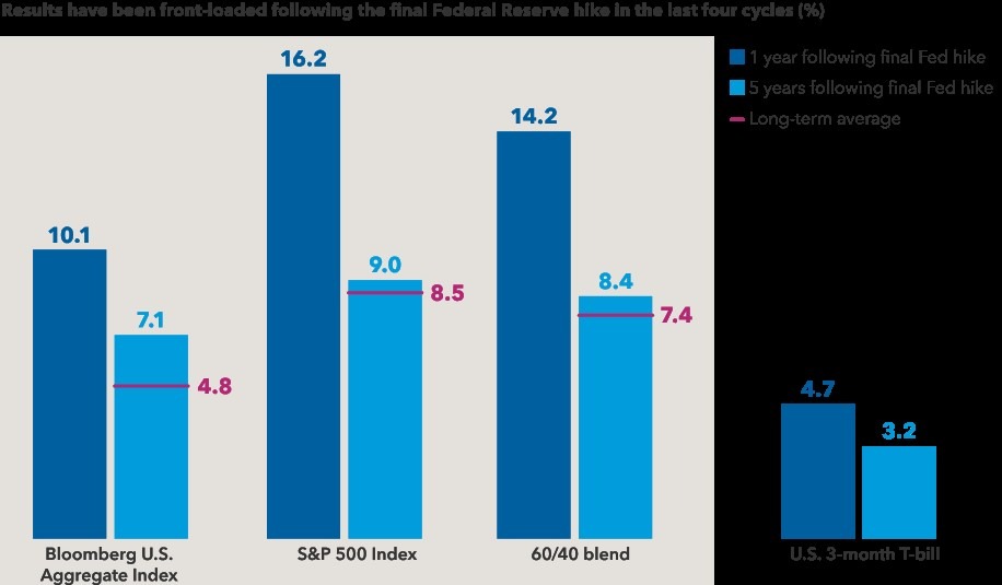 After Fed hikes ended, long-term results outpaced cash, with the first year contributing most.